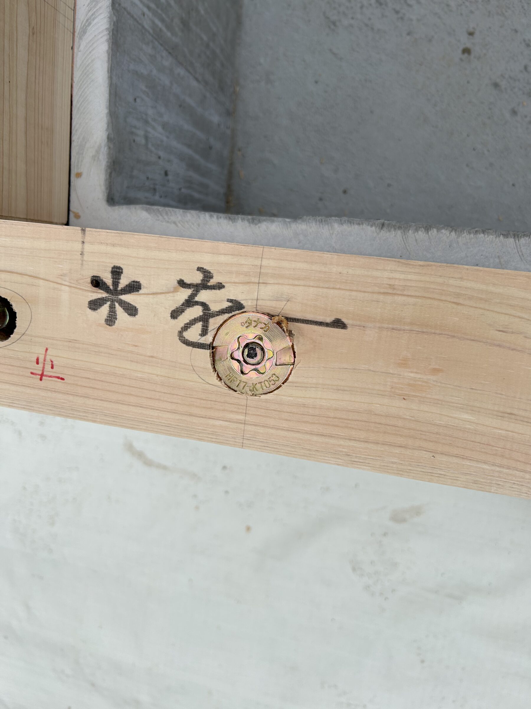 土台は基礎と緊結にするため、専用の座金で固定をしていきます。