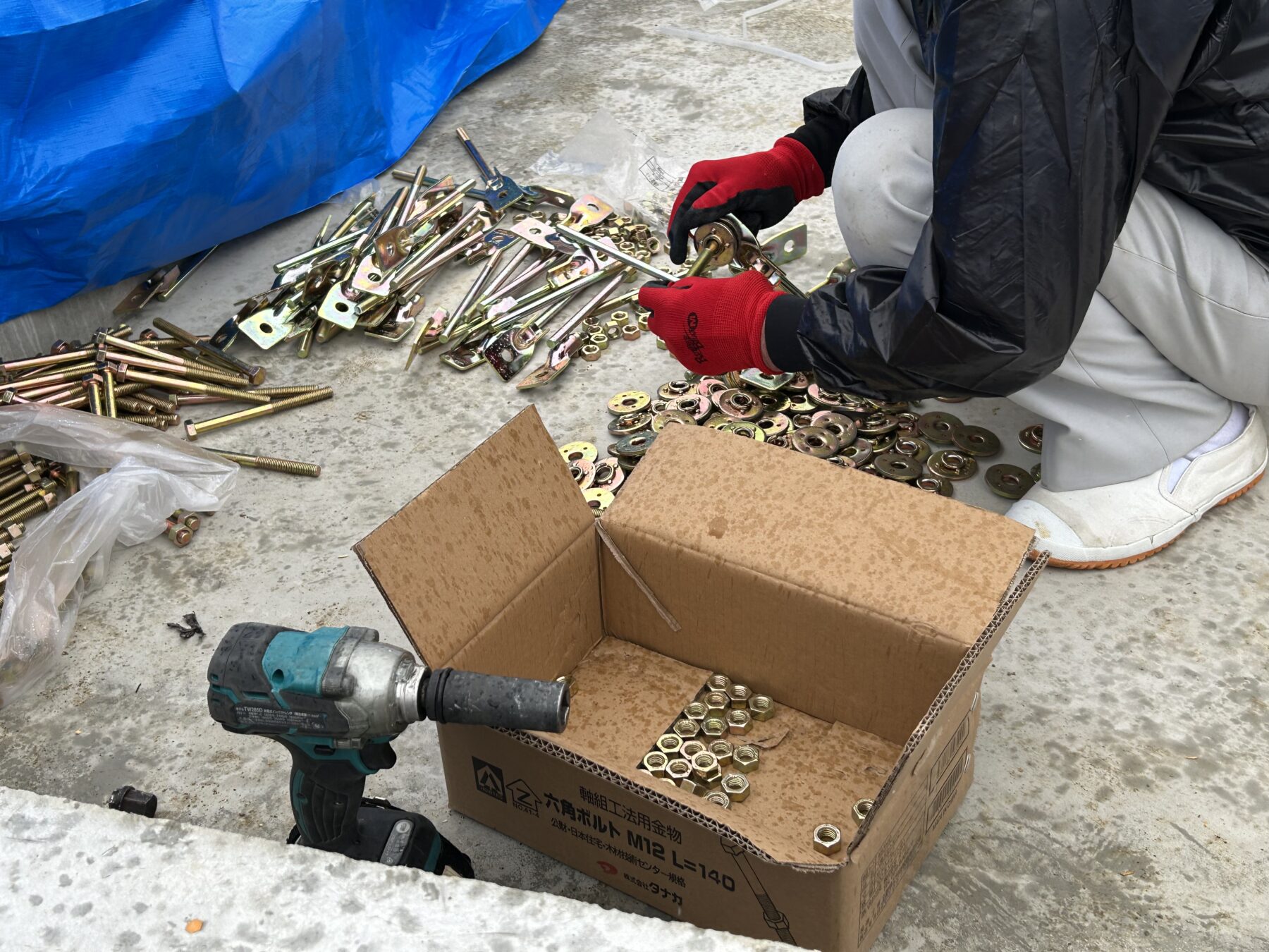 また上棟日に使う金物を組み合わせて事前に準備をします。
