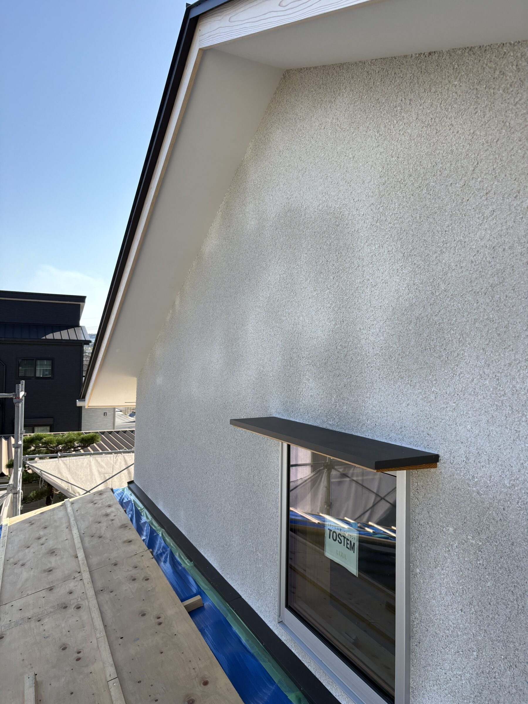 撫川の家Ⅱでは、外壁のシラスそとん壁仕上げを行いました。