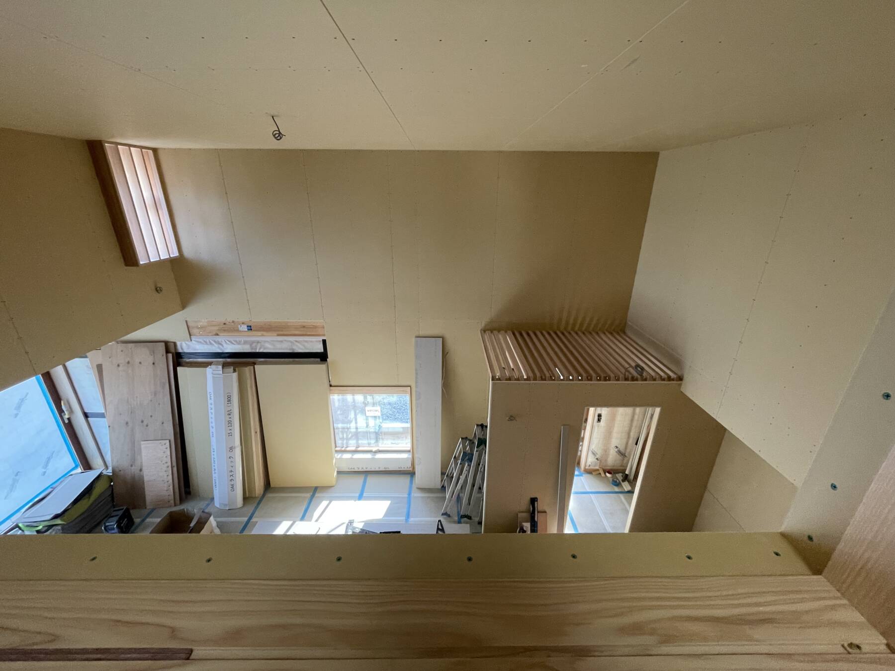 撫川の家Ⅱでは、吹抜け部の足場を解体し