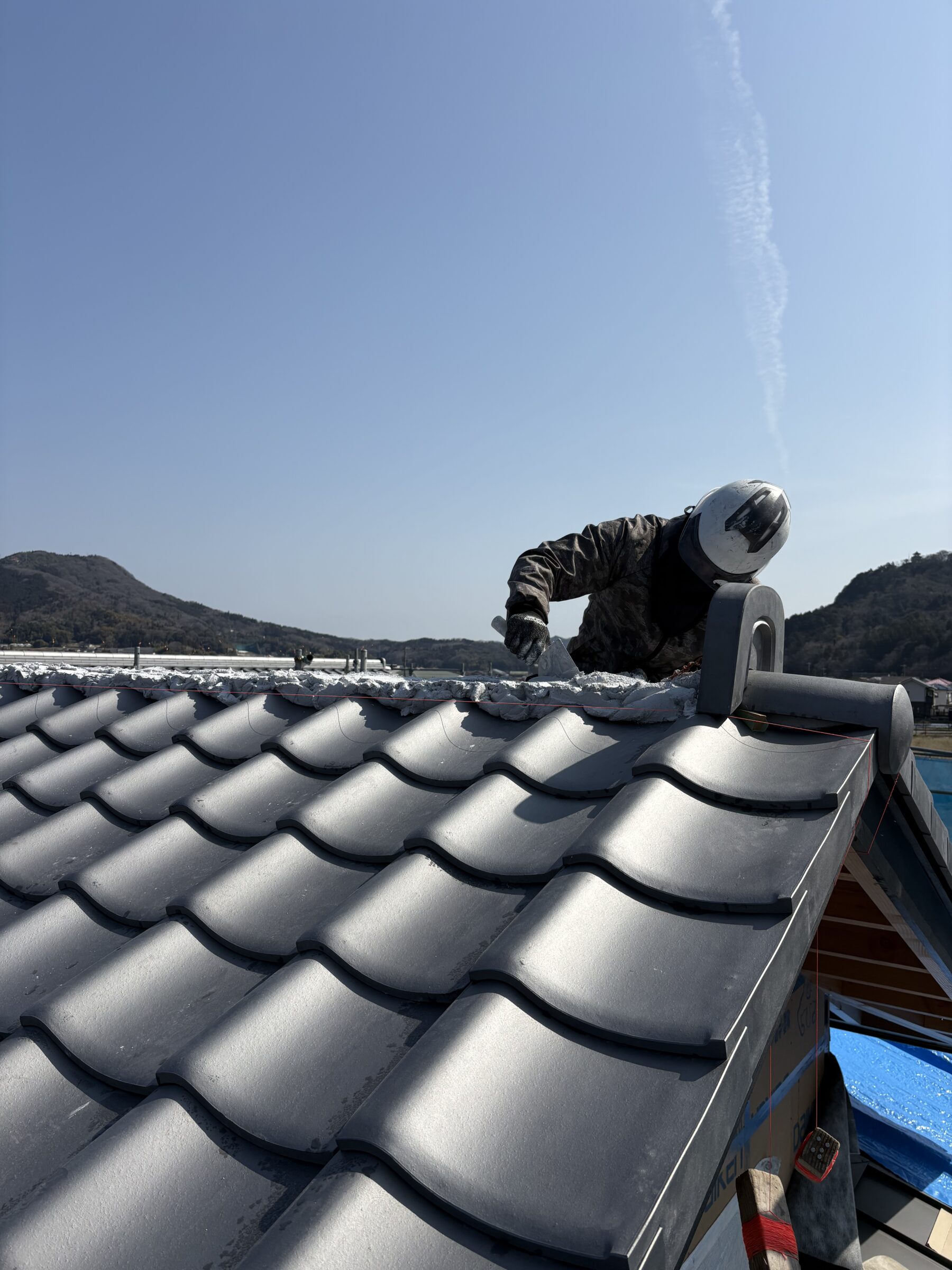 あと少しで瓦の施工を終えます。