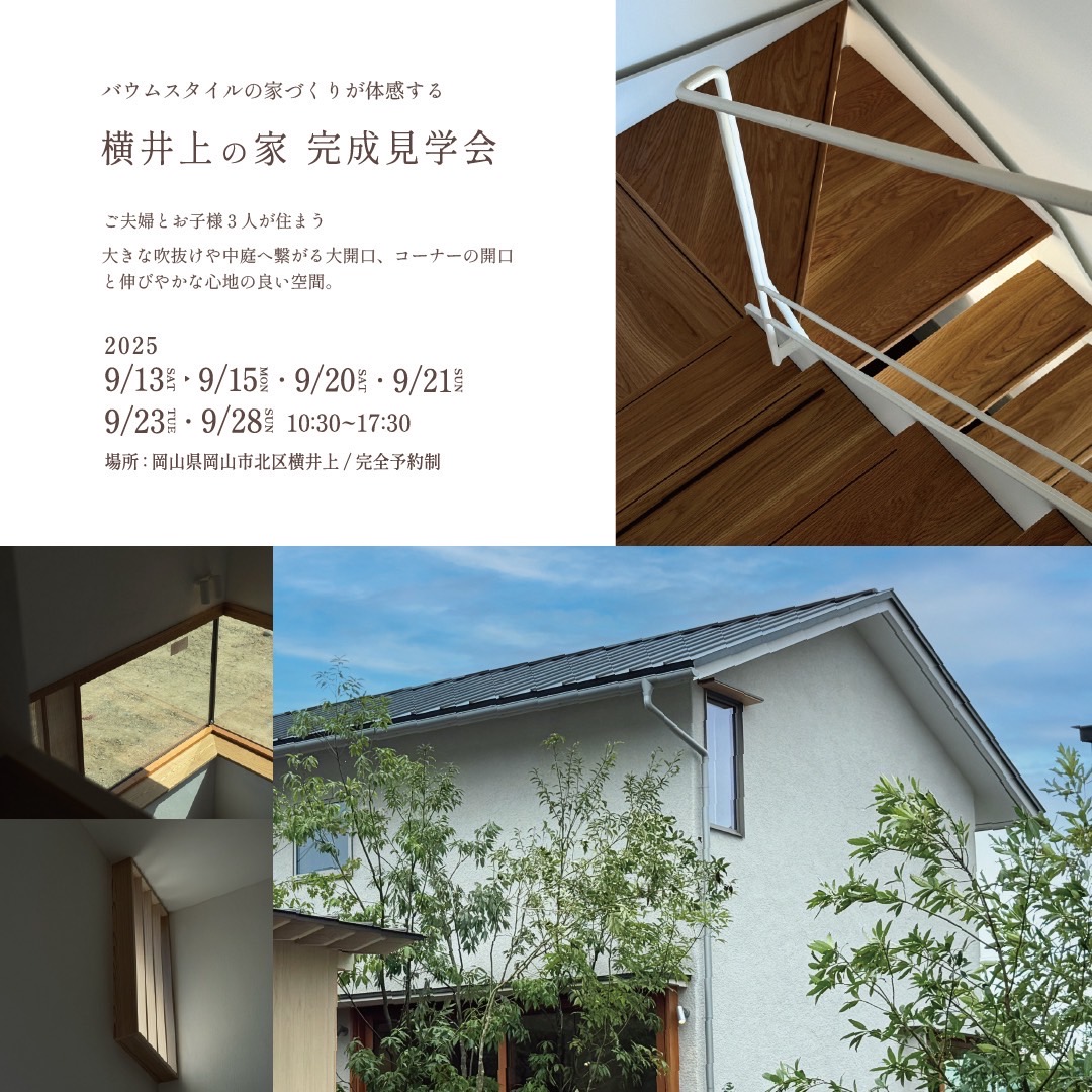 岡山市北区横井上にて、設計を行っていました住宅が完成いたします。