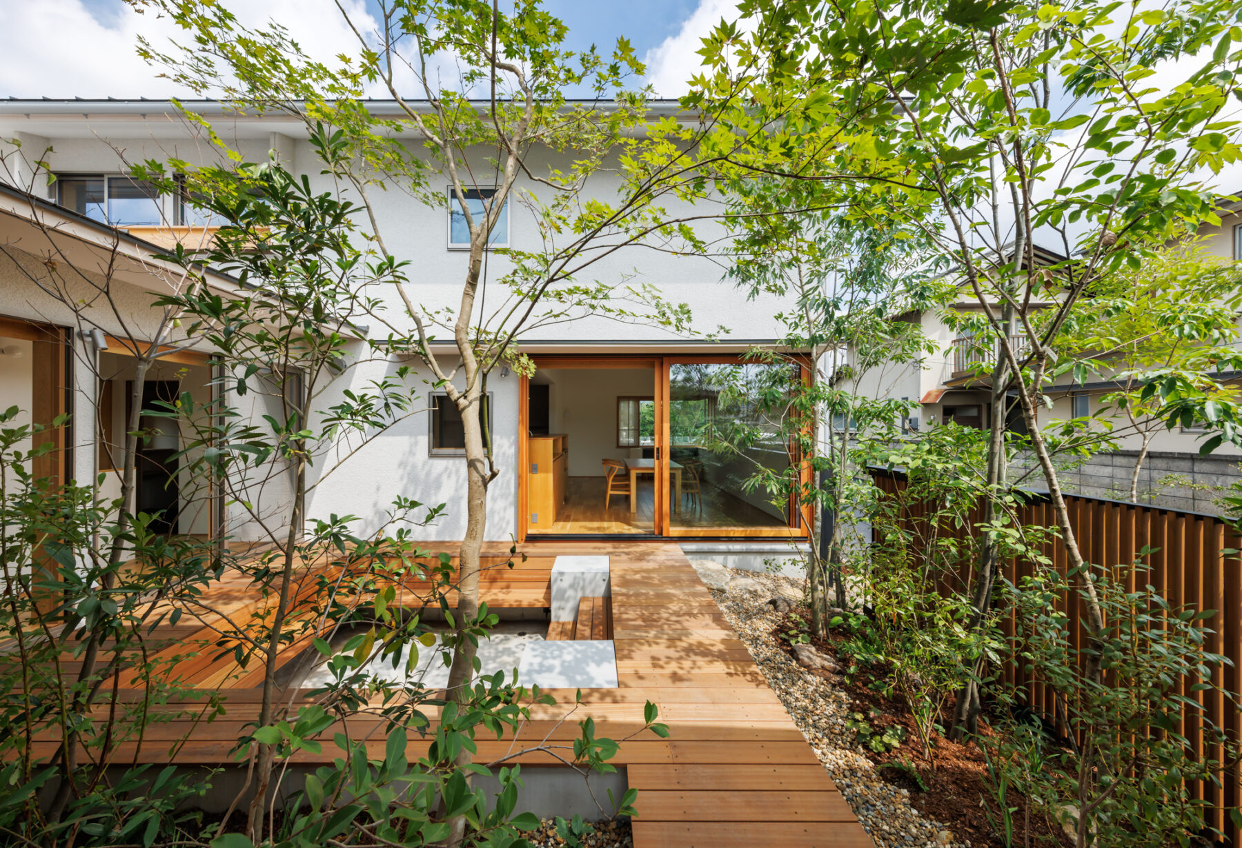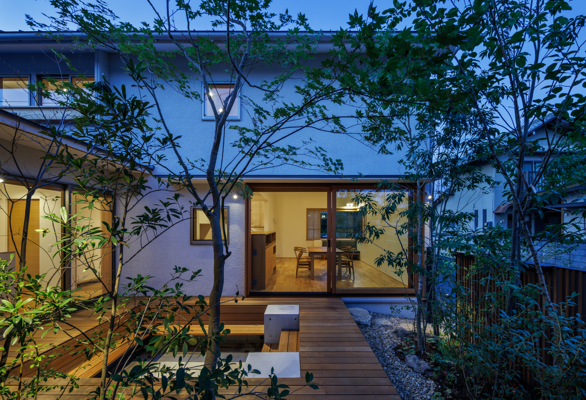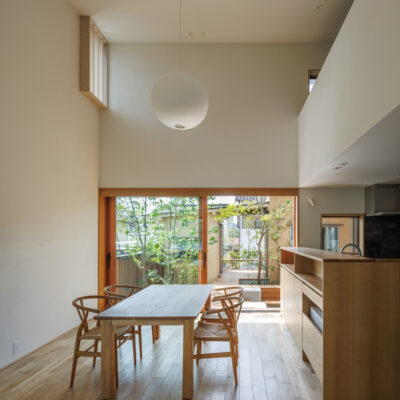 家族の暮らしが積み重なり、季節や時間の移ろいとともに、ゆっくりと馴染み、成熟していくことを大切にした住宅です。